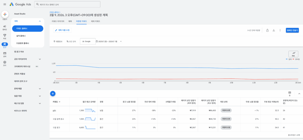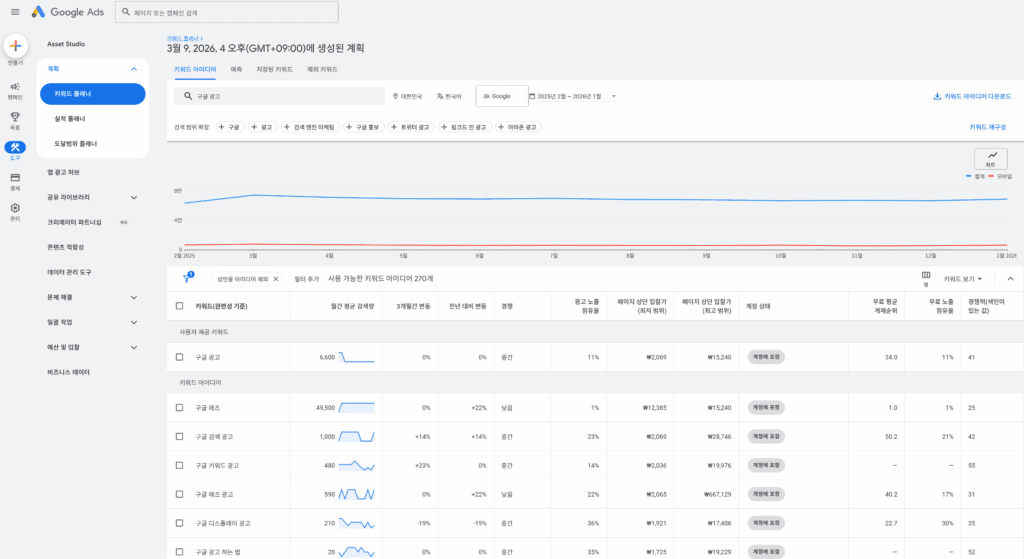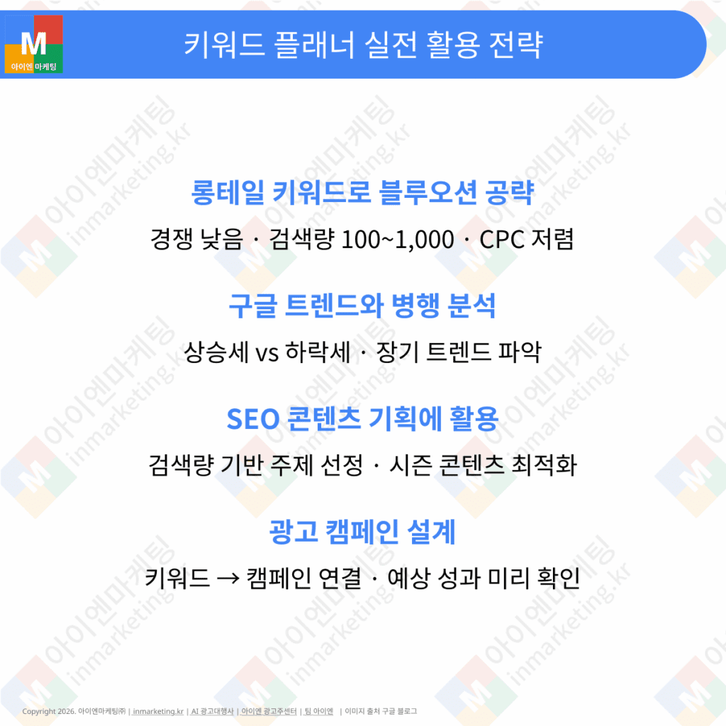 키워드 플래너는 광고뿐 아니라 블로그 및 웹사이트 콘텐츠 기획에도 강력한 도구입니다.