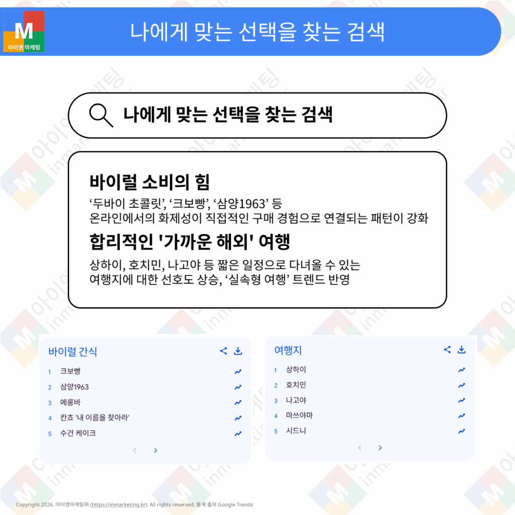 패션, 여행, 식품 카테고리에서는 ‘타인의 시선’보다 ‘나의 만족’과 ‘실용성’을 중시하는 흐름이 강화되었습니다.
