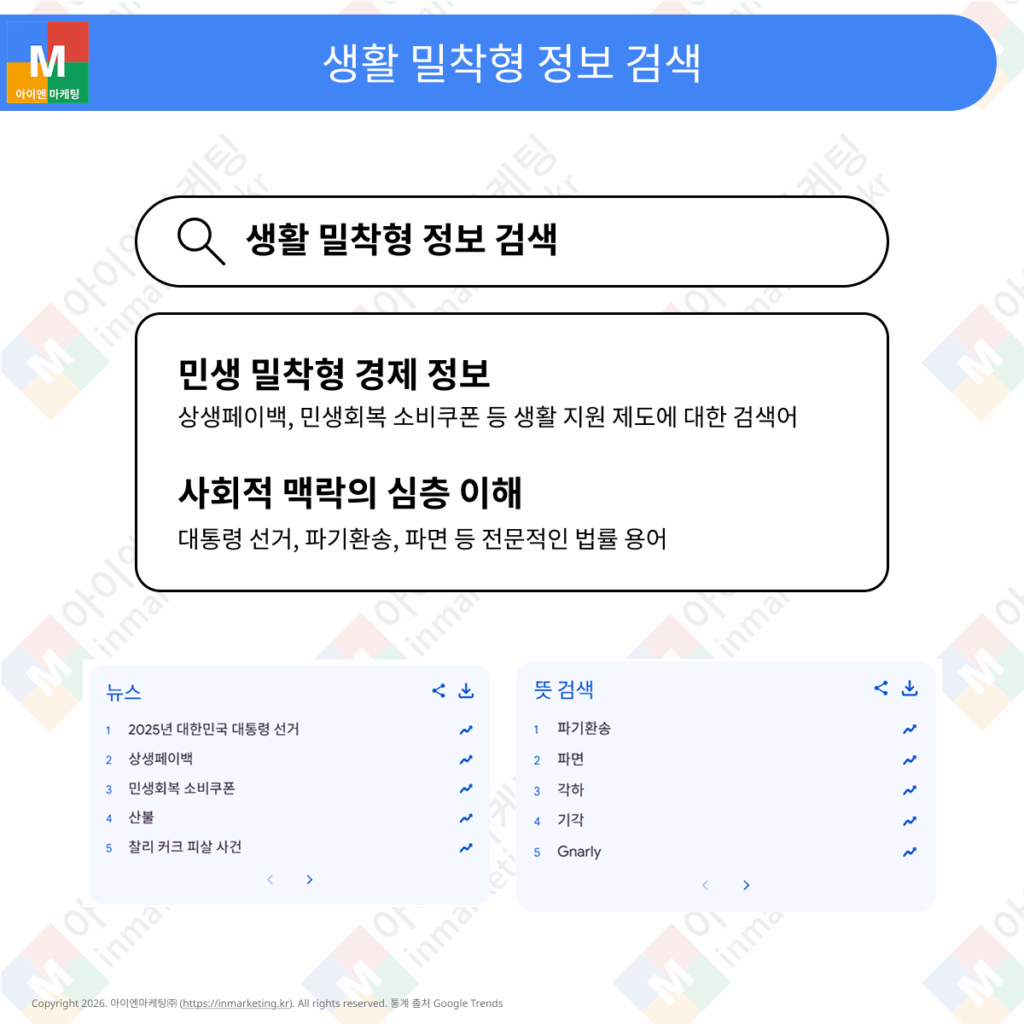 - 사회적 맥락의 심층 이해: ‘대통령 선거’와 같은 정치 이벤트는 물론, ‘파기환송’, ‘파면’ 등 전문적인 법률 용어 검색이 증가했습니다.