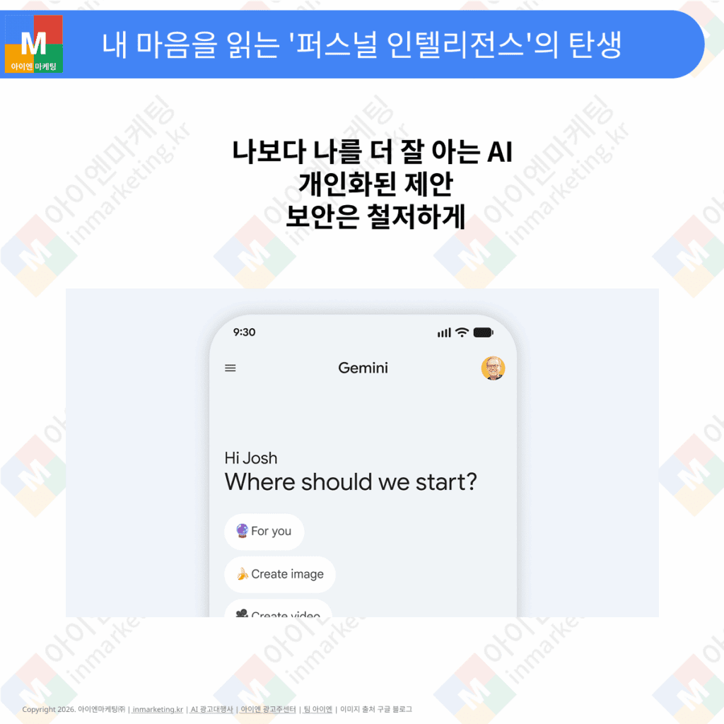 - 개인화된 제안: “작년 가족 여행 때 가장 좋았던 곳이 어디였지?”라고 물으면 구글 포토와 지메일 예약 내역을 분석해 정확한 장소와 당시의 추억을 떠올려 줍니다.