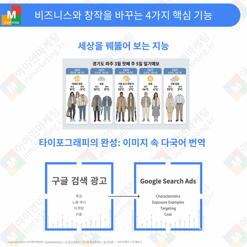 아이엔마케팅은 Google과 AI의 변화에 가장 빠르게 대응하는 구글 전문 광고 대행사입니다. 내 비즈니스에 맞는 구글 광고 전략이 필요하시다면 ‘아이엔마케팅 홈페이지‘, 혹은 AI 아이엔마케팅 사이트에 방문해주세요. 자세한 상담 및 제안서를 받아보시고 싶으신가요? 지금 아이엔마케팅 홈페이지에서 무료 제안서를 신청하시고, 내 비즈니스에 최적화된 맞춤 제안서를 받아보세요.