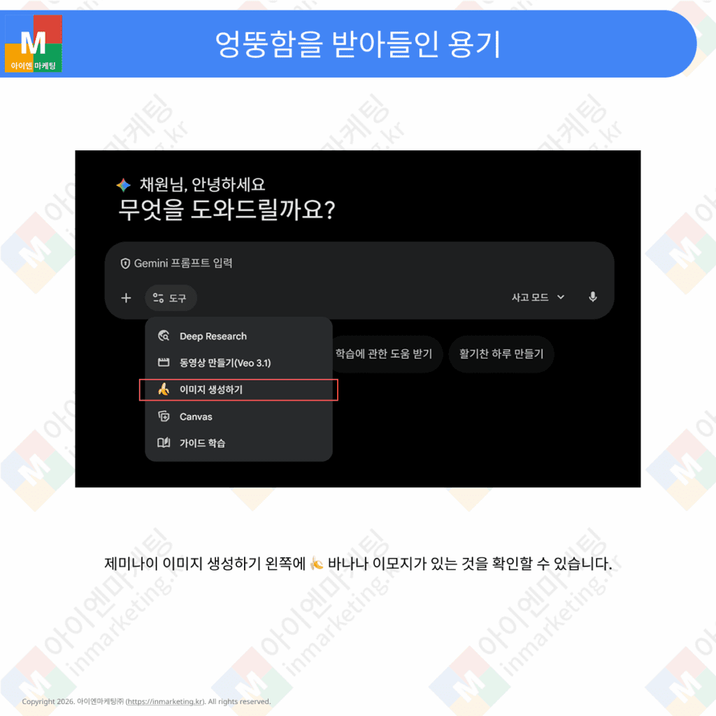 구글은 이 모델의 상징성을 적극 활용했습니다. AI Studio의 실행 버튼을 노란색으로 바꾸고, Gemini 앱의 “이미지 생성” 칩에 바나나 이모지를 추가했으며, 한정판 바나나 테마 굿즈까지 제작했습니다.