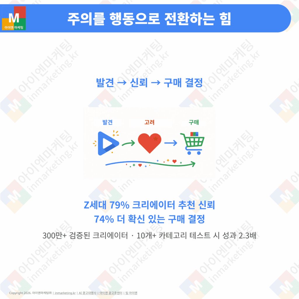 크리에이터 마케팅의 새로운 시대에서, 목적 있는 시청은 마케터의 경쟁 우위가 됩니다. 유튜브 크리에이터의 신뢰와 AI 솔루션을 결합하면, 고객 여정의 가장 중요한 순간에 시청자에게 도달할 수 있습니다.
